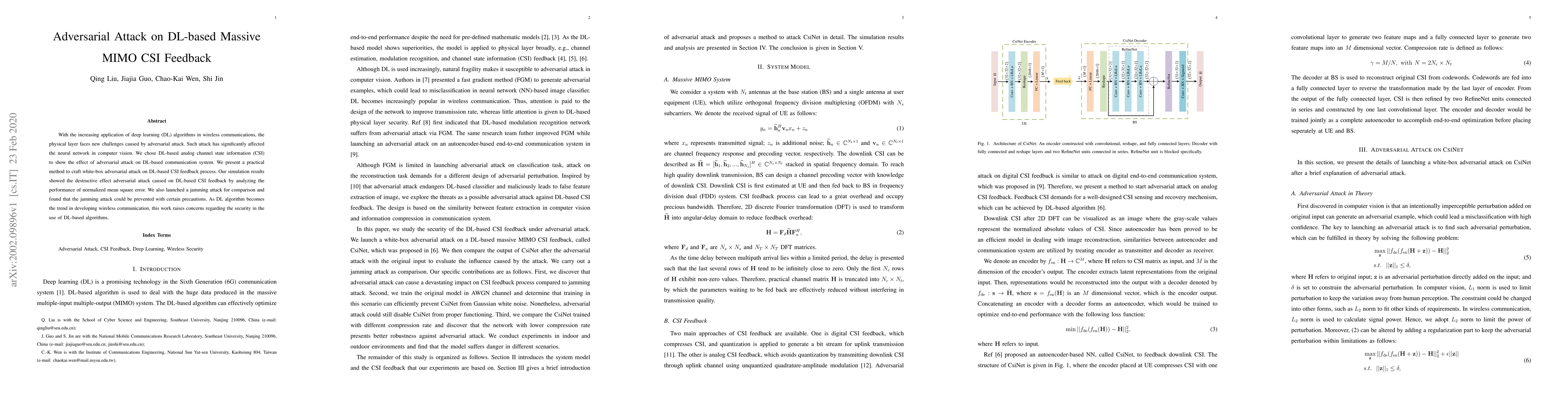 Researchers found that deep learning-based analog channel state information (CSI) is vulnerable to adversarial attacks, which can cause significant performance degradation. The study raises concerns about the security of using deep learning algorithms in wireless communication systems.