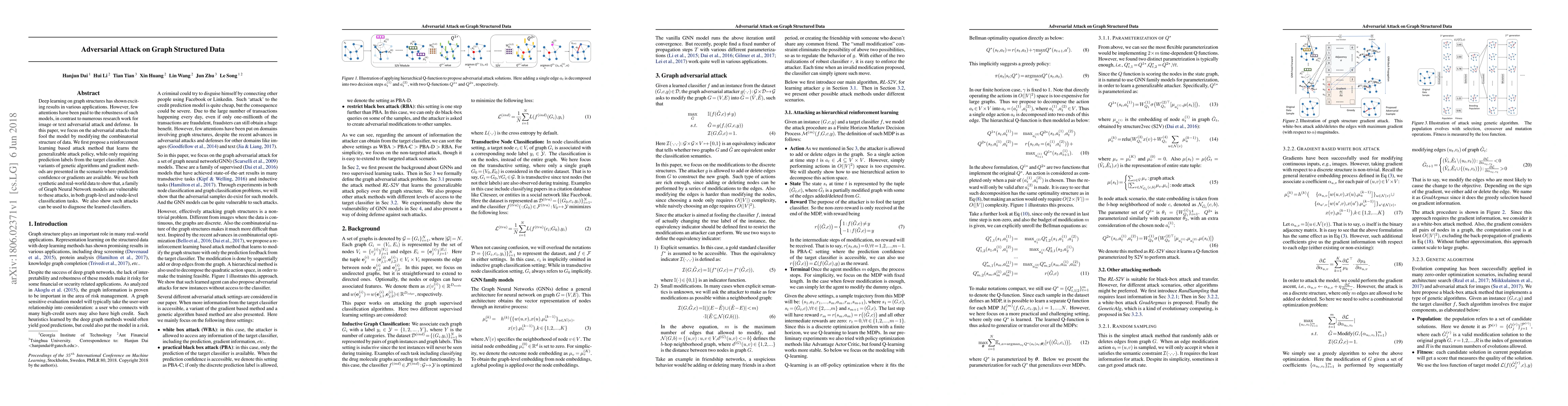 This paper introduces novel adversarial attack methods targeting graph neural networks, demonstrating vulnerabilities in both graph-level and node-level classification tasks. The proposed attack leverages reinforcement learning, genetic algorithms, and gradient methods, showing that these attacks can effectively fool graph models and diagnose the classifiers.