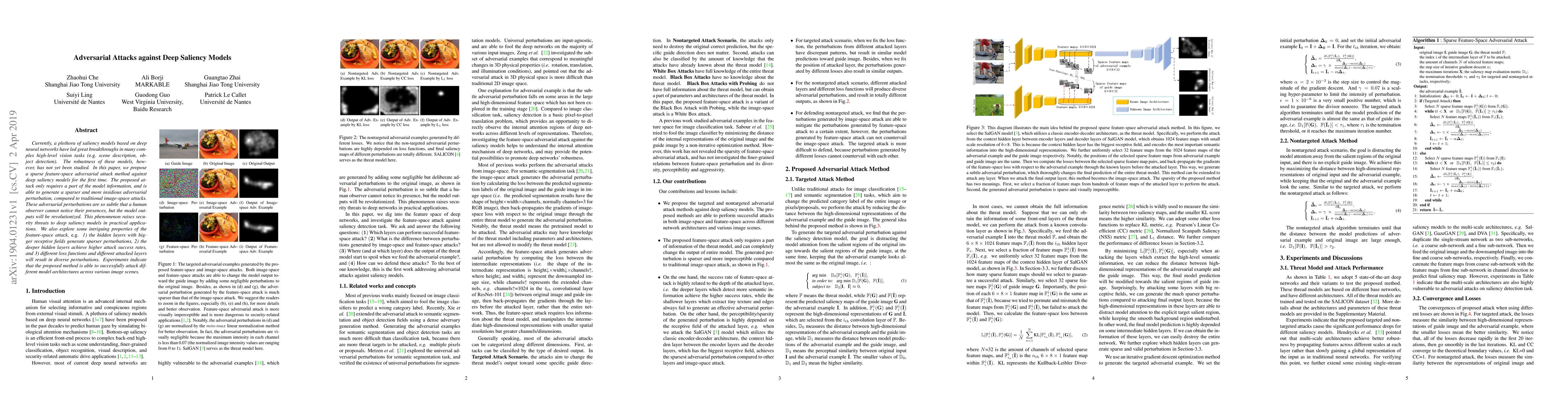 This paper introduces a novel sparse feature-space adversarial attack method against deep saliency models, demonstrating that subtle perturbations can significantly alter model outputs without being noticeable to human observers. The study reveals intriguing properties of the attack and shows its effectiveness across various model architectures and image scenes.