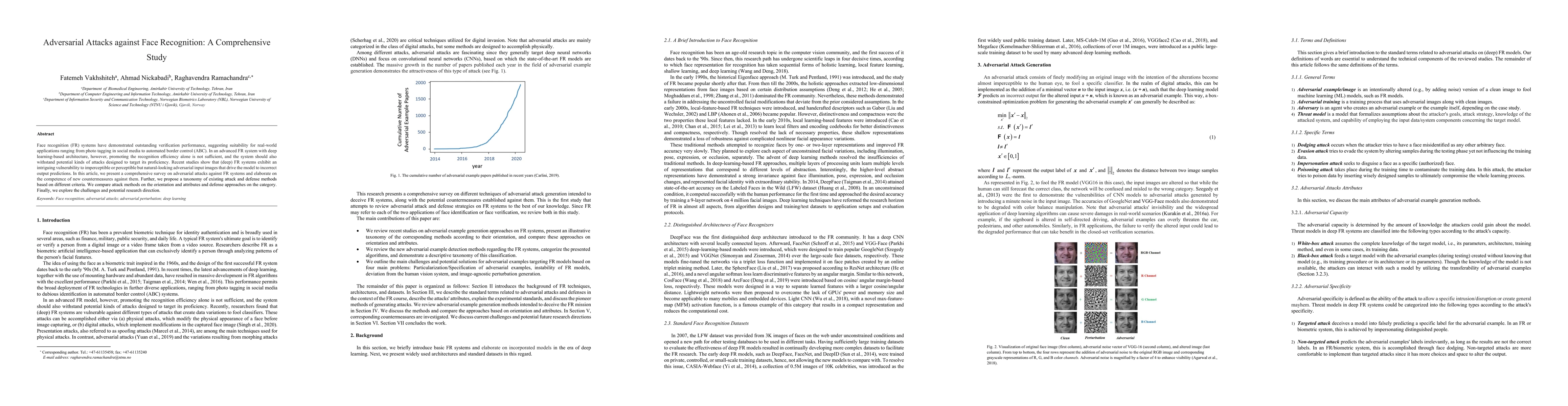 This paper provides a comprehensive survey on adversarial attacks targeting face recognition systems, highlighting vulnerabilities in deep learning-based architectures. It proposes a taxonomy for existing attack and defense methods, discusses challenges, and suggests potential research directions.
