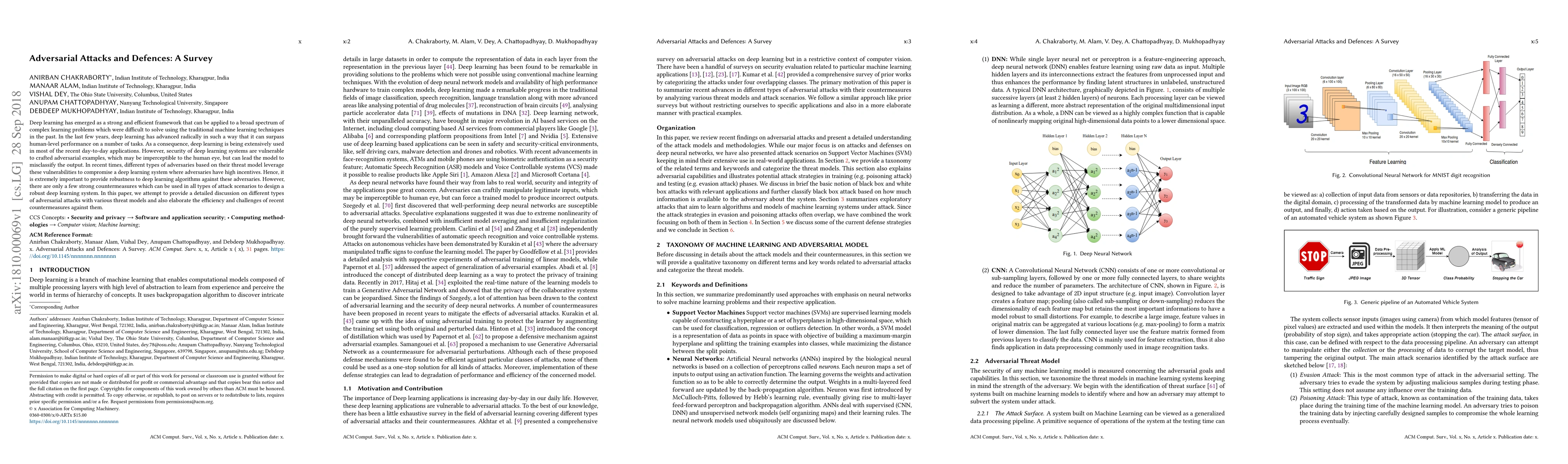 This paper surveys adversarial attacks and defenses in deep learning systems, highlighting vulnerabilities to crafted examples that can compromise model performance. It discusses recent countermeasures and their efficiency, but notes the need for robustness against various attack scenarios.