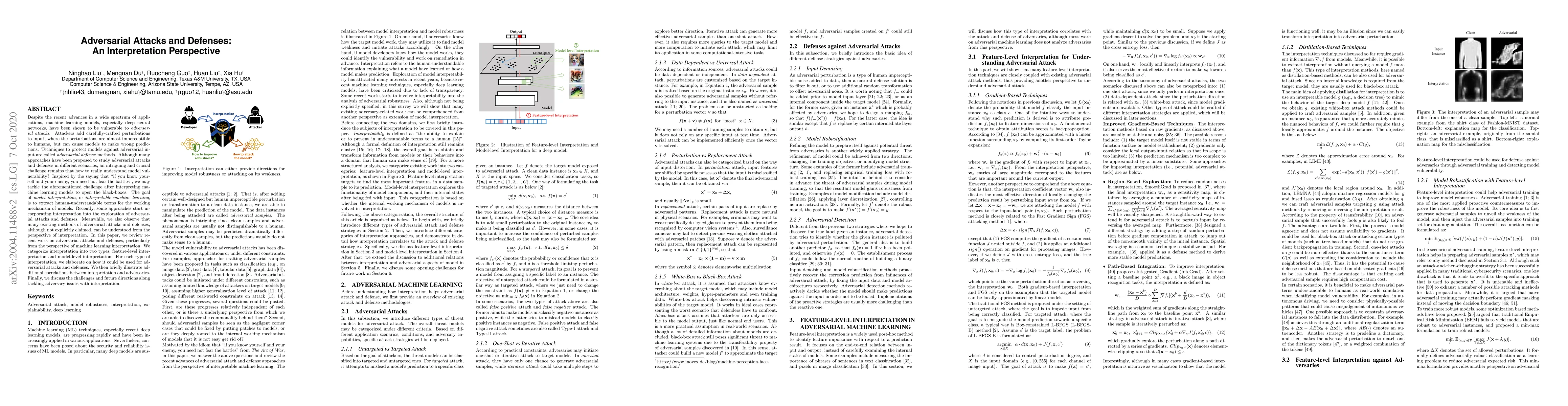 This paper reviews recent advancements in adversarial attacks and defenses, focusing on the perspective of machine learning interpretation to better understand model vulnerabilities. It categorizes interpretation into feature-level and model-level, discussing their roles in both attacking and defending machine learning models, and highlights future challenges and directions in this area.