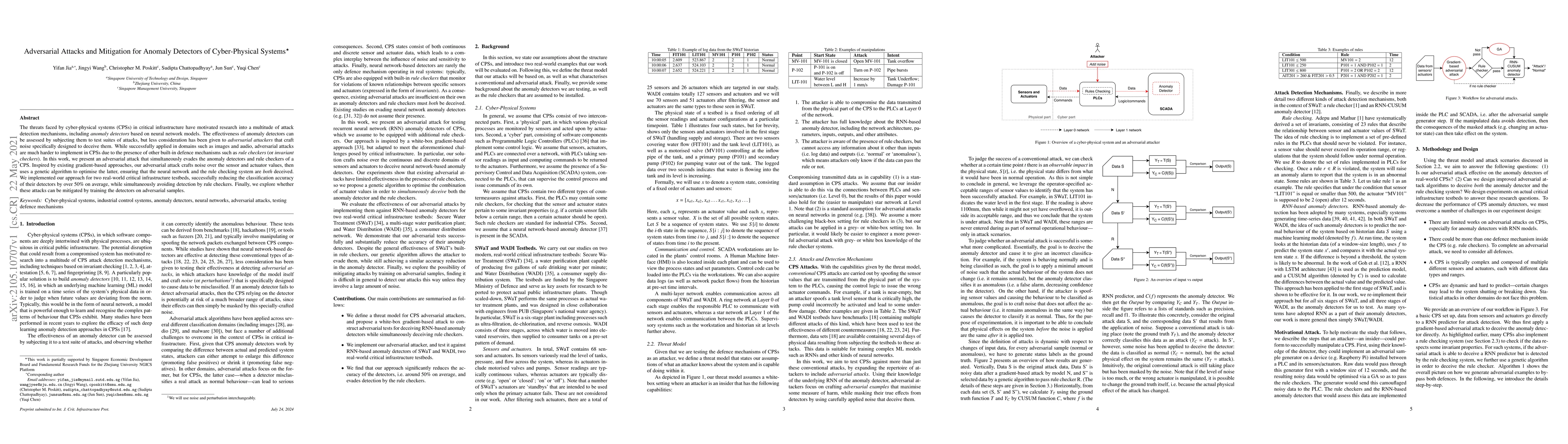 This paper presents an adversarial attack designed to deceive anomaly detectors in cyber-physical systems (CPSs) while evading built-in rule checkers. The attack optimizes crafted noise using a genetic algorithm, successfully reducing detection accuracy by over 50% in real-world testbeds. The study also investigates mitigation strategies by training detectors on adversarial samples.