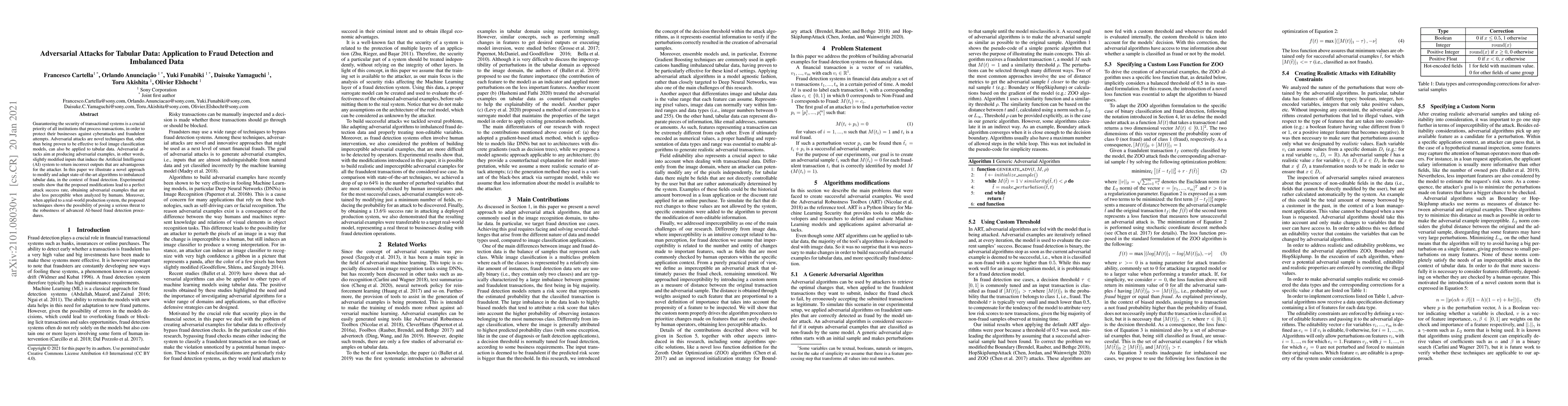 The paper adapts adversarial algorithms from image classification to tabular data, specifically for fraud detection in imbalanced datasets. Modifications include a custom threshold, realistic constraints, editability considerations, and a custom norm for imperceptibility.