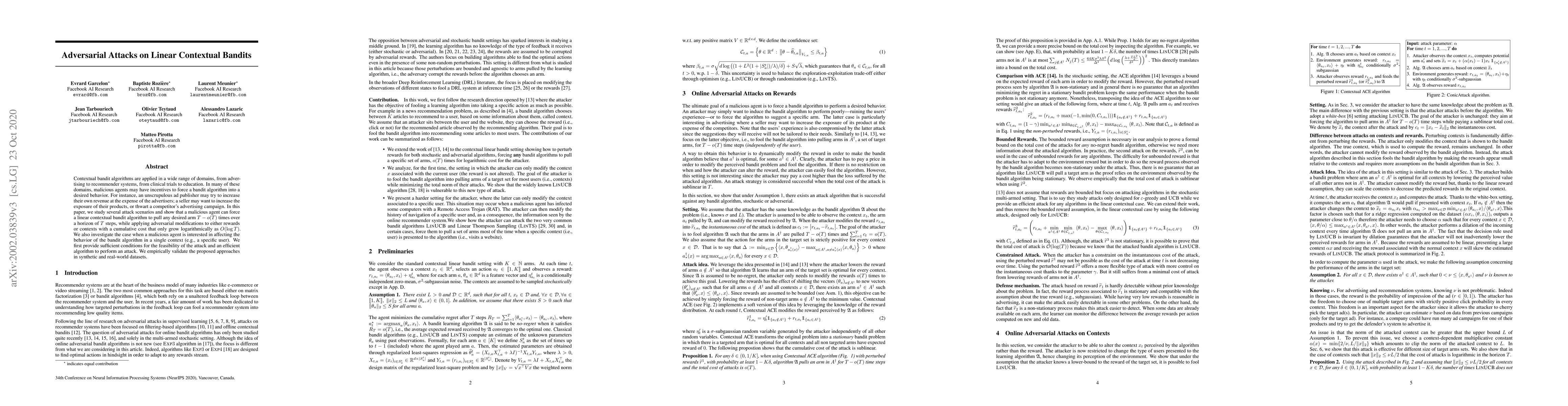 Researchers show that malicious agents can force linear contextual bandit algorithms to perform desired actions, even with limited modifications to rewards or contexts, allowing for significant control over the algorithm's behavior.