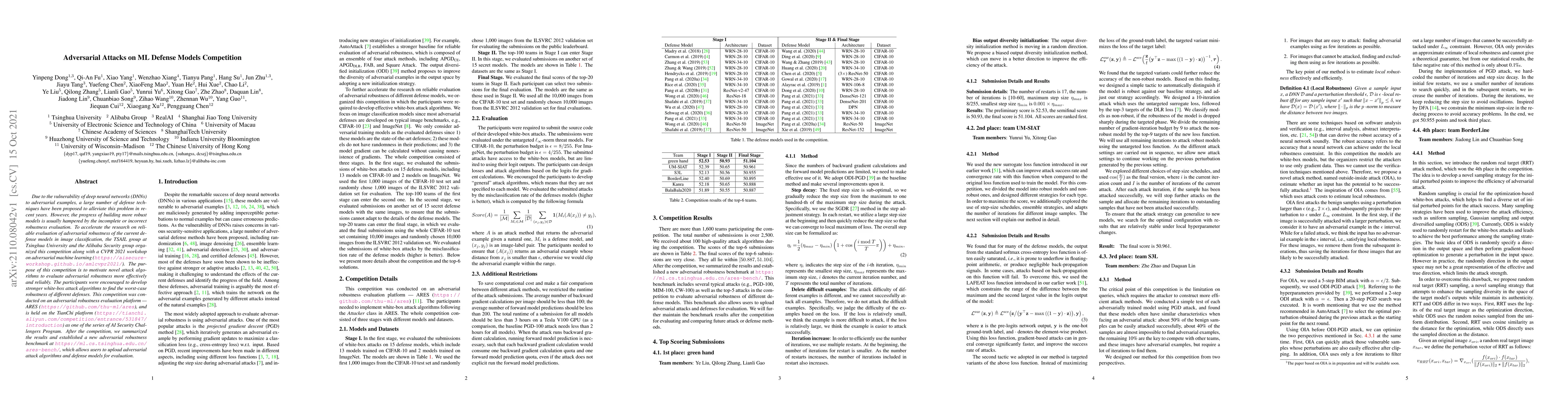The paper describes the organization of the Adversarial Attacks on ML Defense Models Competition, which aimed to develop stronger white-box attack algorithms to evaluate adversarial robustness of various defense models in image classification. The competition was conducted on the ARES platform and TianChi, with participants encouraged to optimize their attack methods under specific constraints.
