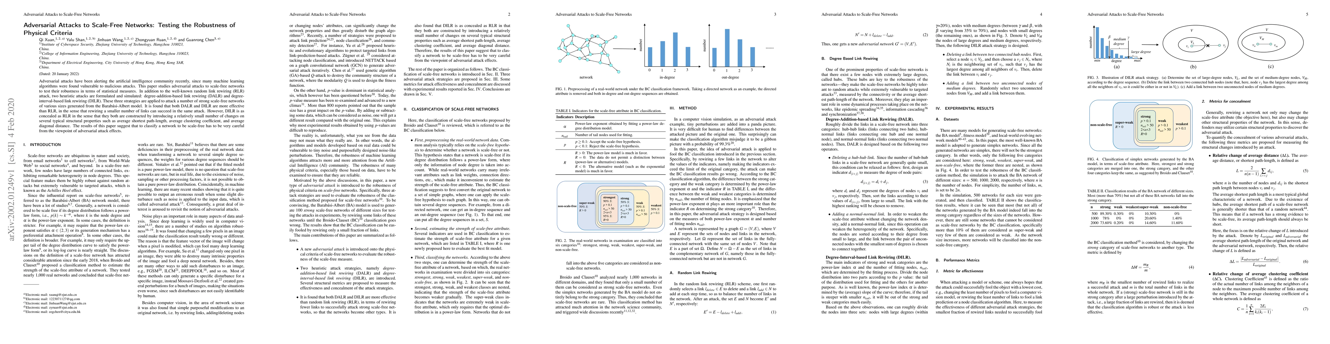 Adversarial attacks have been alerting the artificial intelligence community recently, since many machine learning algorithms were found vulnerable to malicious attacks. This paper studies adversarial attacks to scale-free networks to test their robustness in terms of statistical measures. In addition to the well-known random link rewiring (RLR) attack, two heuristic attacks are formulated and simulated: degree-addition-based link rewiring (DALR) and degree-interval-based link rewiring (DILR). These three strategies are applied to attack a number of strong scale-free networks of various sizes generated from the Barab\'asi-Albert model. It is found that both DALR and DILR are more effective than RLR, in the sense that rewiring a smaller number of links can succeed in the same attack. However, DILR is as concealed as RLR in the sense that they both are constructed by introducing a relatively small number of changes on several typical structural properties such as average shortest path-length, average clustering coefficient, and average diagonal distance. The results of this paper suggest that to classify a network to be scale-free has to be very careful from the viewpoint of adversarial attack effects.