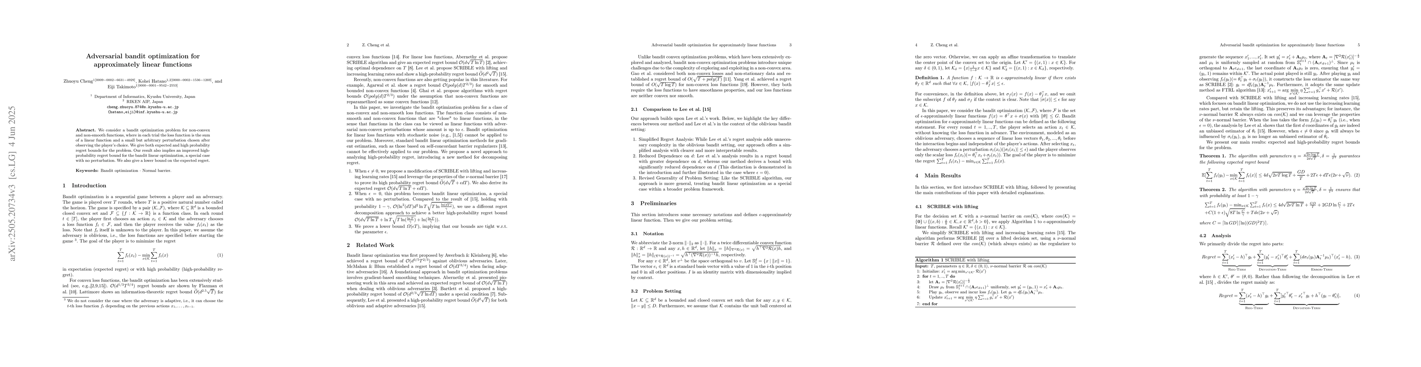 The paper presents novel regret bounds for adversarial bandit optimization with approximately linear functions, improving existing results for bandit linear optimization.