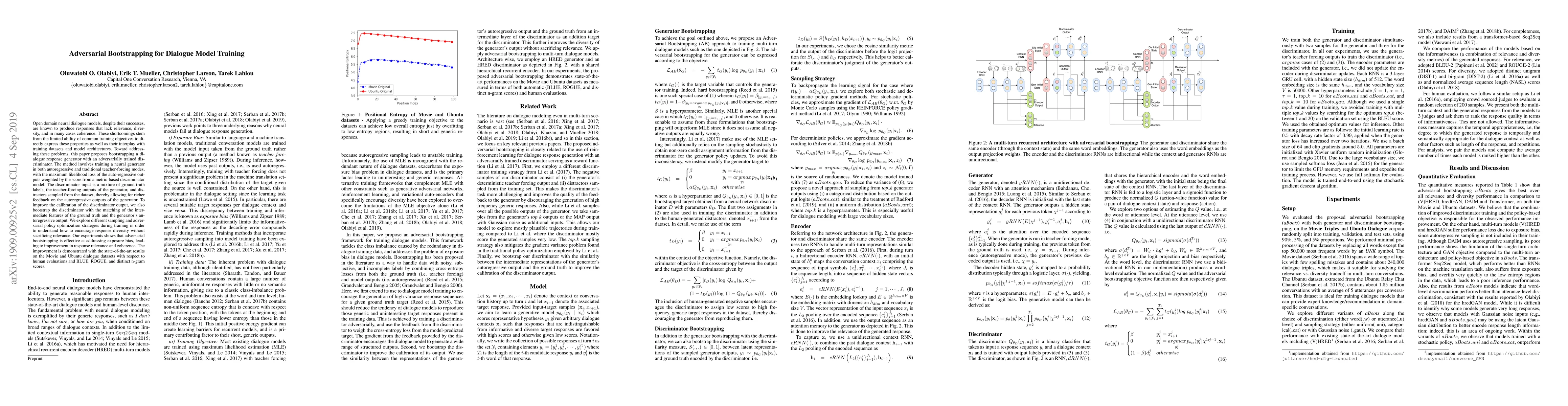 This paper proposes adversarial bootstrapping to enhance open domain neural dialogue models by training a generator with an adversarially trained discriminator, which improves response relevance, diversity, and coherence. The method combines autoregressive and teacher-forcing training, with the discriminator providing feedback on the generator's outputs, leading to state-of-the-art results on dialogue datasets.