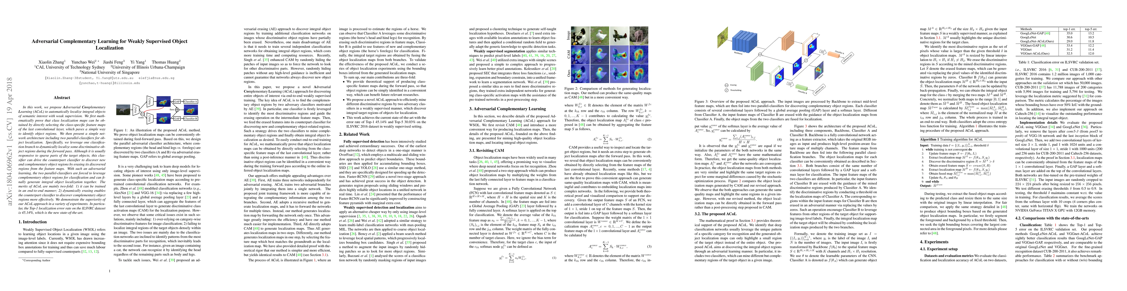 The paper introduces Adversarial Complementary Learning (ACoL), a method that leverages two parallel classifiers to discover complementary object regions for integral localization under weak supervision.