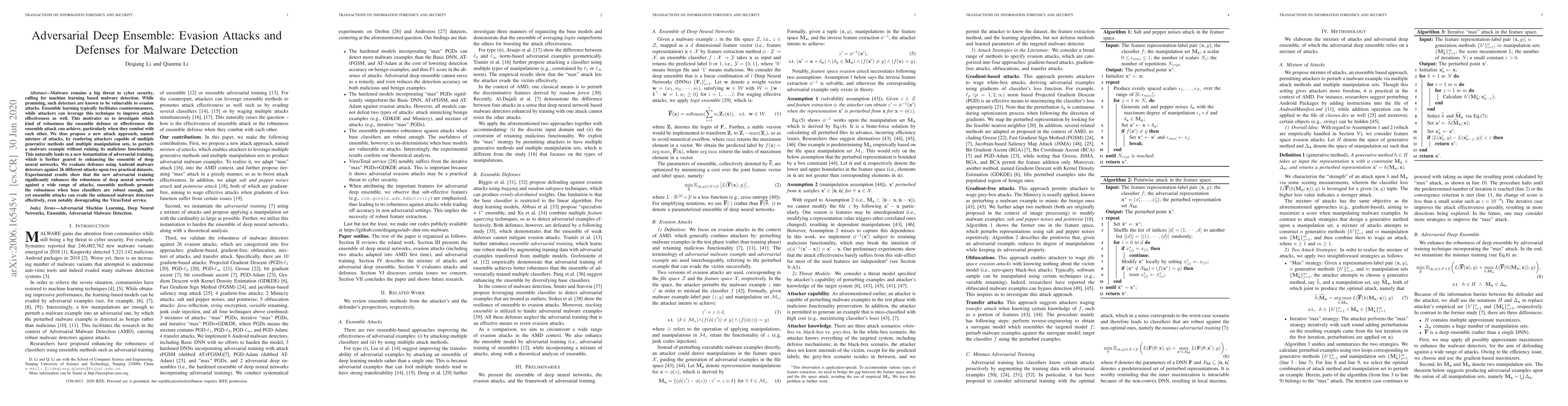 This paper investigates evasion attacks and defenses in machine learning-based malware detection, proposing a new ensemble attack method called mixture of attacks. It demonstrates that adversarial training enhances deep neural network robustness but also finds that ensemble attacks can still effectively evade enhanced detectors, even impacting services like VirusTotal.