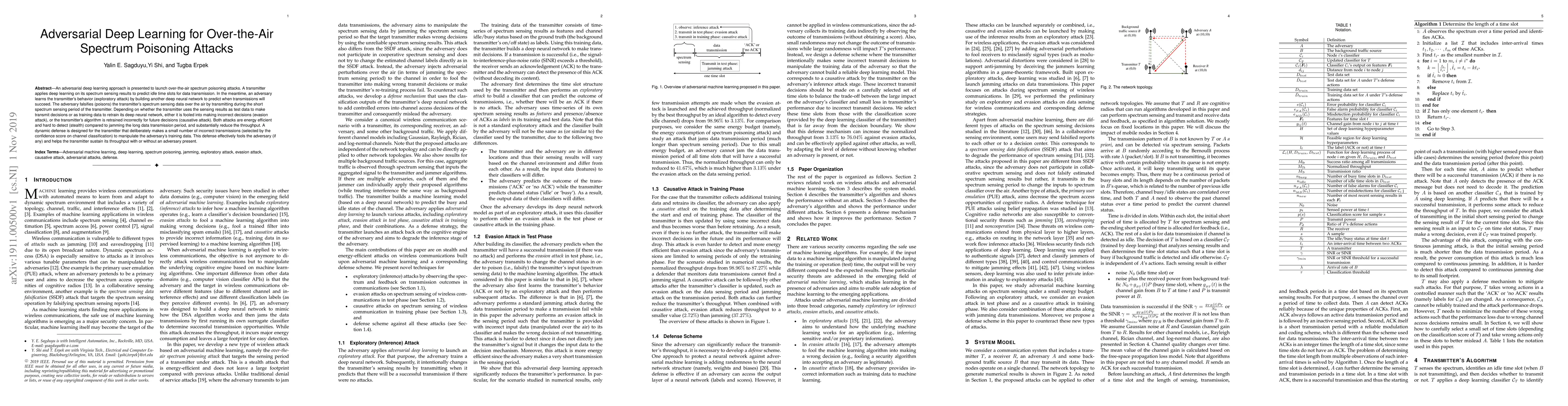 A deep learning-based approach was used to design over-the-air spectrum sensing poisoning attacks that target the spectrumsensing period and manipulate the input data of the transmitter in test and training phases.