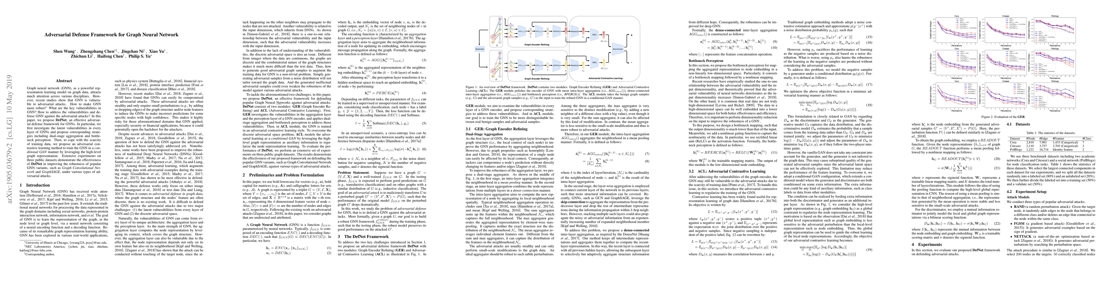 This paper proposes DefNet, an adversarial defense framework for Graph Neural Networks (GNNs), addressing their vulnerabilities through dual-stage aggregation and bottleneck perceptron strategies. It also introduces an adversarial contrastive learning method to enhance robustness, validated by improved performance on public datasets against various adversarial attacks.