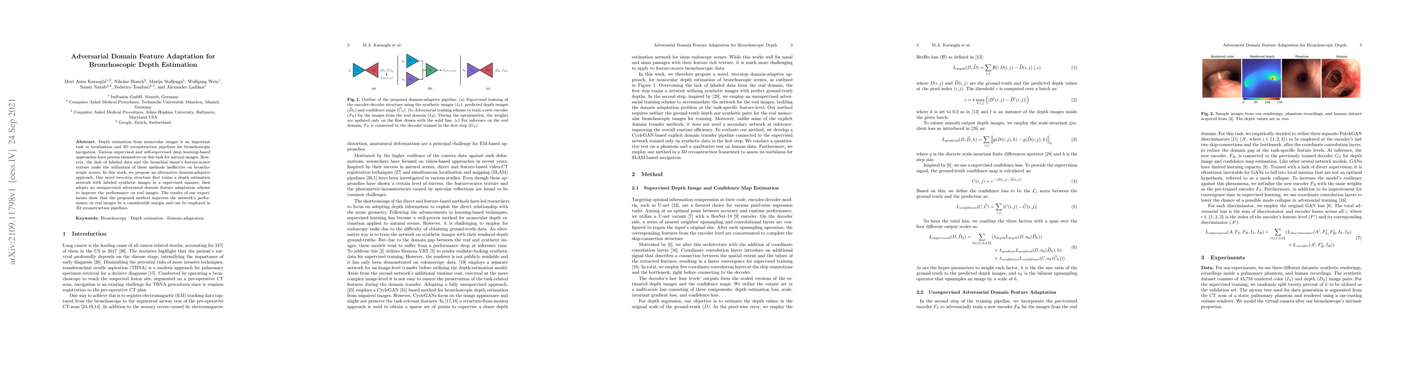 A new approach for bronchoscopic depth estimation uses a two-step method combining labeled synthetic images and unsupervised domain adaptation to improve performance on real images.