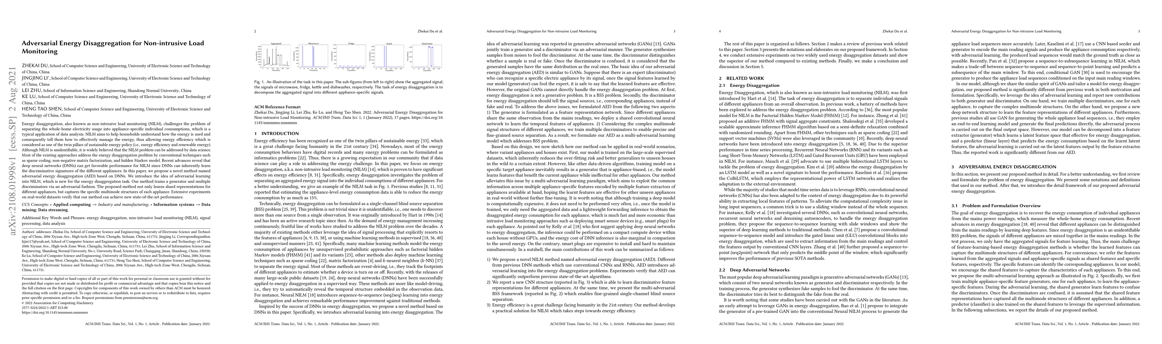 The paper presents a novel adversarial energy disaggregation method using deep neural networks, which learns shared and specific appliance features through multi-adversarial learning, resulting in improved NILM performance.