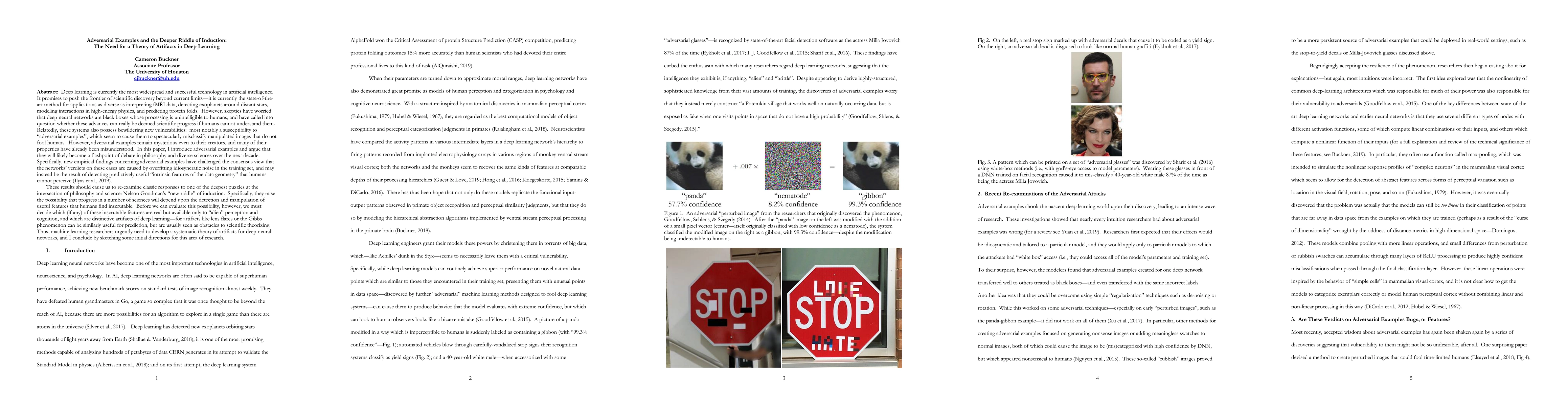 Deep learning is currently the most widespread and successful technology in artificial intelligence. It promises to push the frontier of scientific discovery beyond current limits. However, skeptics have worried that deep neural networks are black boxes, and have called into question whether these advances can really be deemed scientific progress if humans cannot understand them. Relatedly, these systems also possess bewildering new vulnerabilities: most notably a susceptibility to "adversarial examples". In this paper, I argue that adversarial examples will become a flashpoint of debate in philosophy and diverse sciences. Specifically, new findings concerning adversarial examples have challenged the consensus view that the networks' verdicts on these cases are caused by overfitting idiosyncratic noise in the training set, and may instead be the result of detecting predictively useful "intrinsic features of the data geometry" that humans cannot perceive (Ilyas et al., 2019). These results should cause us to re-examine responses to one of the deepest puzzles at the intersection of philosophy and science: Nelson Goodman's "new riddle" of induction. Specifically, they raise the possibility that progress in a number of sciences will depend upon the detection and manipulation of useful features that humans find inscrutable. Before we can evaluate this possibility, however, we must decide which (if any) of these inscrutable features are real but available only to "alien" perception and cognition, and which are distinctive artifacts of deep learning-for artifacts like lens flares or Gibbs phenomena can be similarly useful for prediction, but are usually seen as obstacles to scientific theorizing. Thus, machine learning researchers urgently need to develop a theory of artifacts for deep neural networks, and I conclude by sketching some initial directions for this area of research.