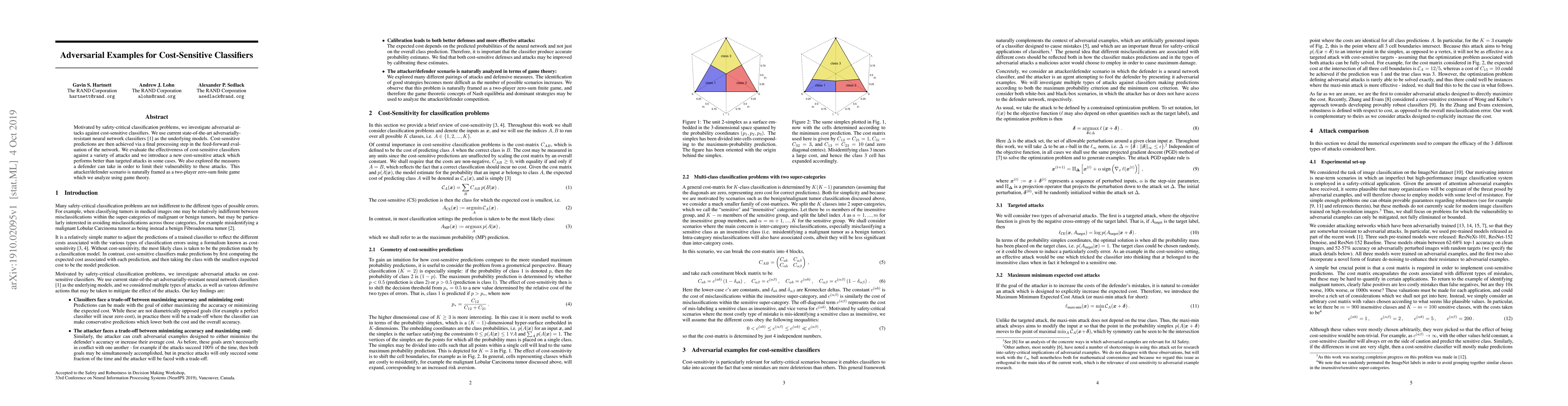 Motivated by safety-critical classification problems, we investigate adversarial attacks against cost-sensitive classifiers. We use current state-of-the-art adversarially-resistant neural network classifiers [1] as the underlying models. Cost-sensitive predictions are then achieved via a final processing step in the feed-forward evaluation of the network. We evaluate the effectiveness of cost-sensitive classifiers against a variety of attacks and we introduce a new cost-sensitive attack which performs better than targeted attacks in some cases. We also explored the measures a defender can take in order to limit their vulnerability to these attacks. This attacker/defender scenario is naturally framed as a two-player zero-sum finite game which we analyze using game theory.