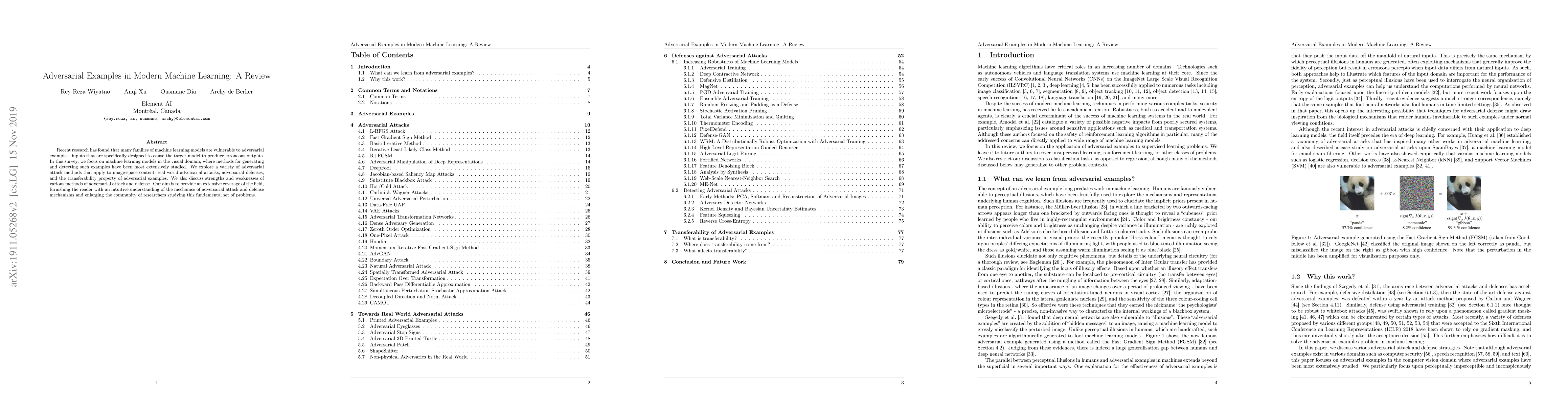 This paper reviews the vulnerabilities of machine learning models in the visual domain to adversarial examples, exploring attack methods, real-world applications, defenses, and the transferability of such examples. It aims to provide a comprehensive understanding of adversarial attacks and defenses to inform ongoing research.