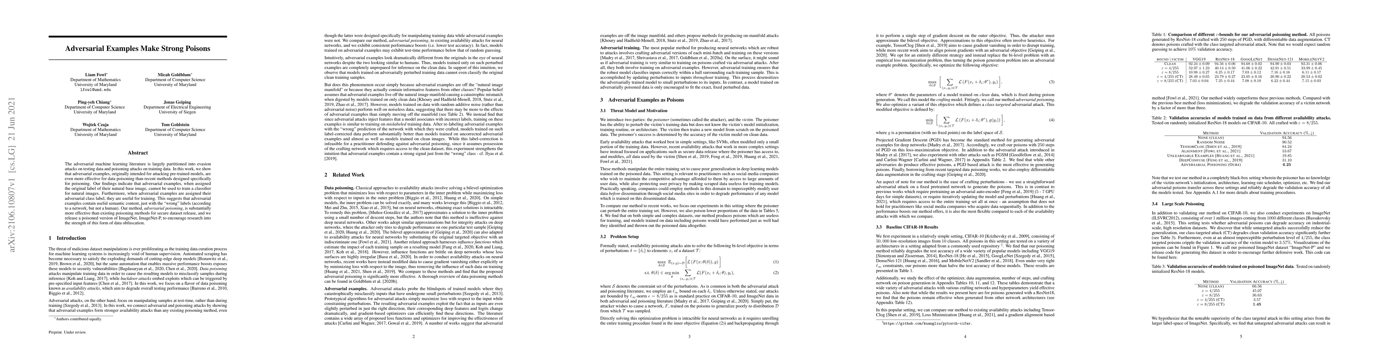This paper demonstrates that adversarial examples, originally designed for attacking pre-trained models, are highly effective for poisoning training data. When labeled with their original labels, they render classifiers ineffective for natural images, but when labeled with adversarial labels, they can be used for training, indicating they hold useful semantic content.