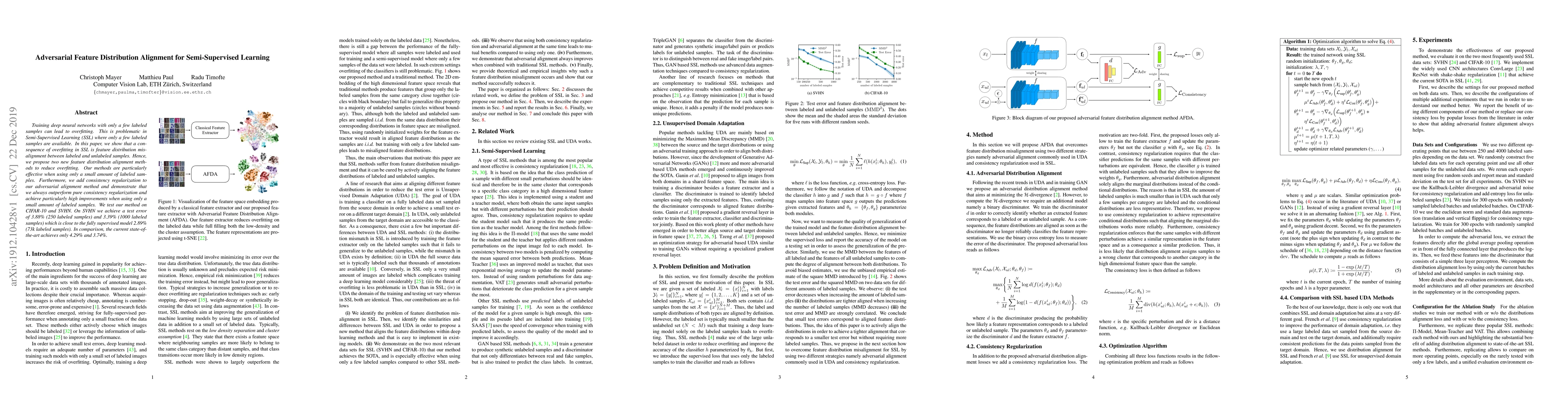 This paper proposes a novel adversarial feature distribution alignment method to address overfitting in semi-supervised learning with limited labeled samples. The method achieves competitive performance on CIFAR10 and SVHN, notably reducing feature distribution misalignment and outperforming current state-of-the-art methods.