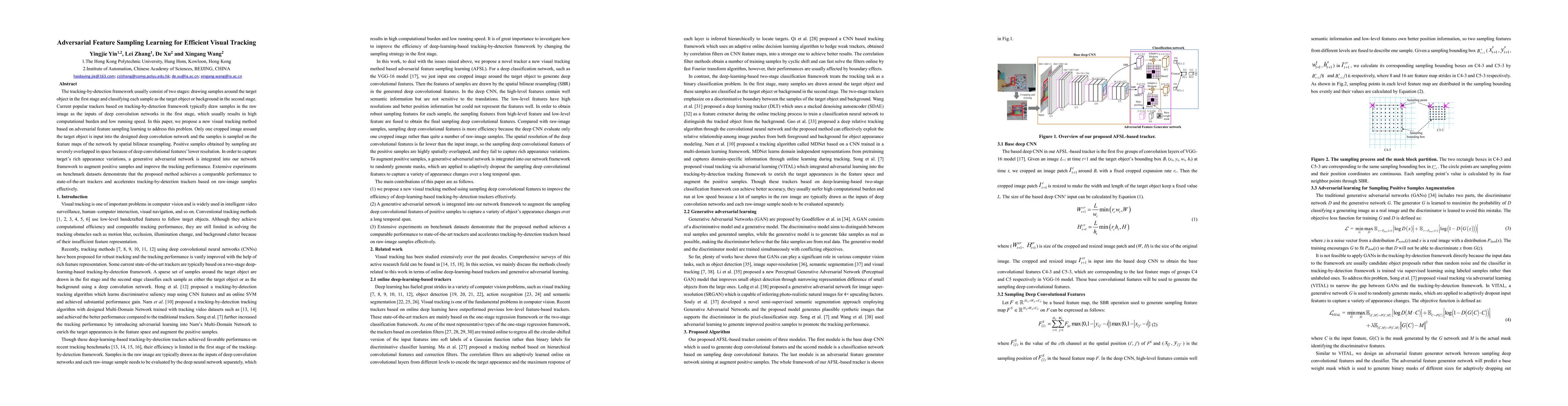 This paper proposes a visual tracking method that samples features from deep convolutional networks instead of raw images to reduce computational load and improve speed. It integrates a generative adversarial network to augment positive samples, achieving competitive performance with state-of-the-art trackers.
