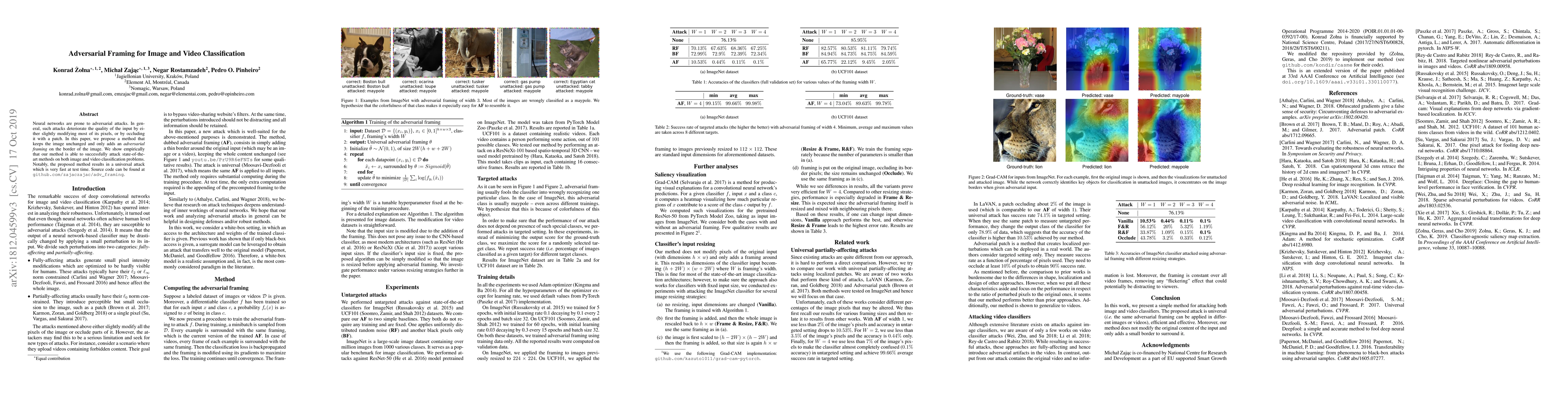 Neural networks are prone to adversarial attacks. In general, such attacks deteriorate the quality of the input by either slightly modifying most of its pixels, or by occluding it with a patch. In this paper, we propose a method that keeps the image unchanged and only adds an adversarial framing on the border of the image. We show empirically that our method is able to successfully attack state-of-the-art methods on both image and video classification problems. Notably, the proposed method results in a universal attack which is very fast at test time. Source code can be found at https://github.com/zajaczajac/adv_framing .