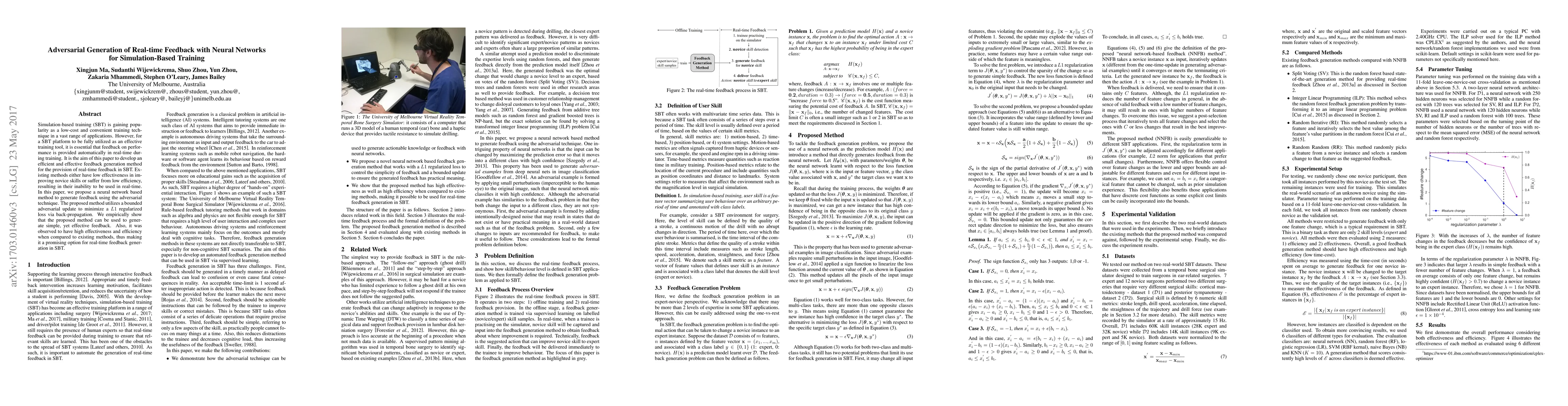 This paper proposes a neural network-based method using adversarial techniques to generate real-time feedback in simulation-based training, achieving high effectiveness and efficiency compared to existing methods. The method employs a bounded adversarial update and L1 regularized loss minimization to provide simple yet effective feedback.