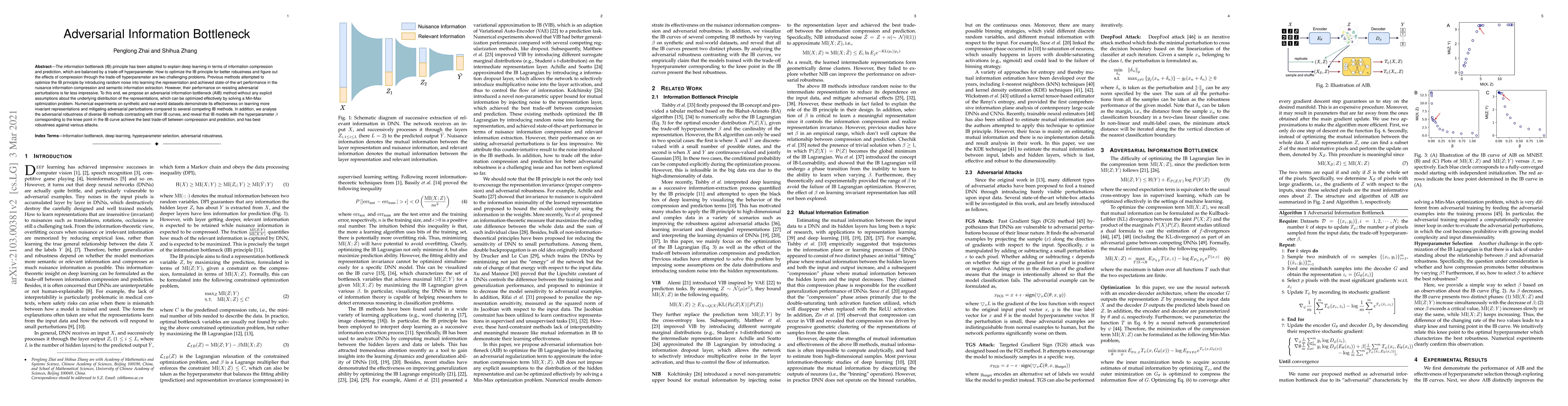 The paper proposes an adversarial information bottleneck (AIB) method to improve robustness in deep learning by optimizing the information bottleneck principle through a Min-Max optimization problem. Experiments show AIB learns more invariant representations and better resists adversarial perturbations compared to other information bottleneck methods.