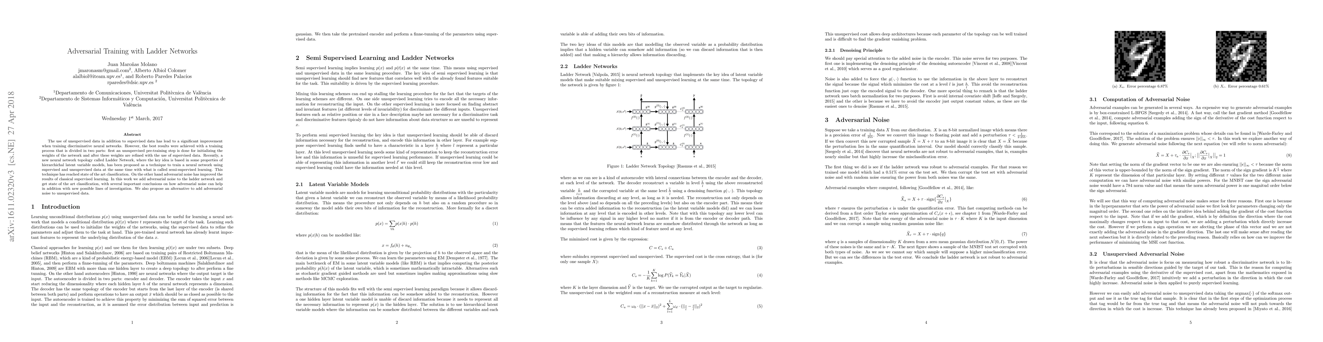 This paper explores the integration of adversarial noise into Ladder Networks, achieving state-of-the-art classification results by combining unsupervised pre-training with supervised learning. The study also proposes an alternative method to incorporate adversarial noise into unsupervised data, offering new research directions.