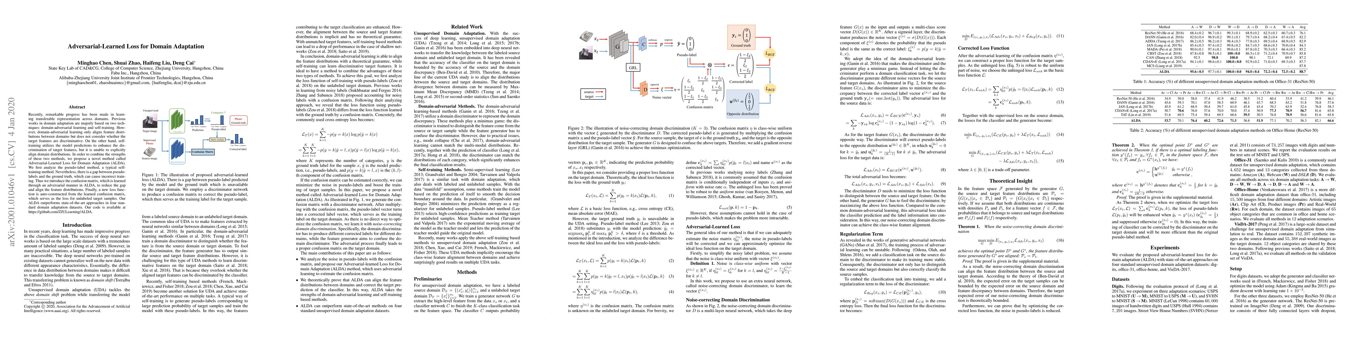 Recently, remarkable progress has been made in learning transferable representation across domains. Previous works in domain adaptation are majorly based on two techniques: domain-adversarial learning and self-training. However, domain-adversarial learning only aligns feature distributions between domains but does not consider whether the target features are discriminative. On the other hand, self-training utilizes the model predictions to enhance the discrimination of target features, but it is unable to explicitly align domain distributions. In order to combine the strengths of these two methods, we propose a novel method called Adversarial-Learned Loss for Domain Adaptation (ALDA). We first analyze the pseudo-label method, a typical self-training method. Nevertheless, there is a gap between pseudo-labels and the ground truth, which can cause incorrect training. Thus we introduce the confusion matrix, which is learned through an adversarial manner in ALDA, to reduce the gap and align the feature distributions. Finally, a new loss function is auto-constructed from the learned confusion matrix, which serves as the loss for unlabeled target samples. Our ALDA outperforms state-of-the-art approaches in four standard domain adaptation datasets. Our code is available at https://github.com/ZJULearning/ALDA.