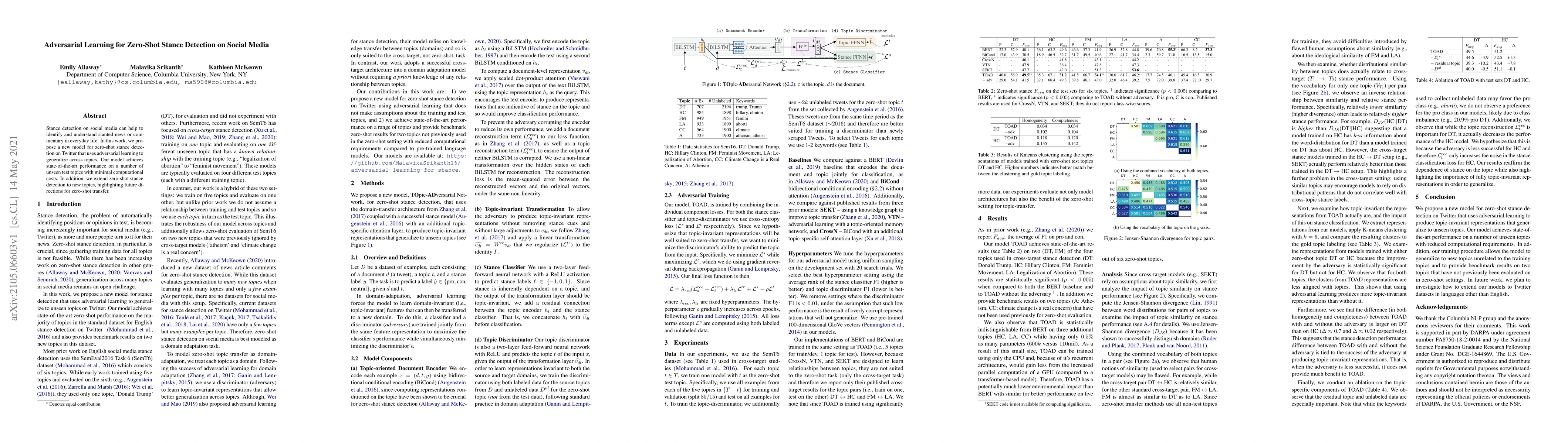 The paper introduces a novel adversarial learning-based model (TOAD) for zero-shot stance detection on Twitter, producing topic-invariant representations that generalize well to unseen topics.