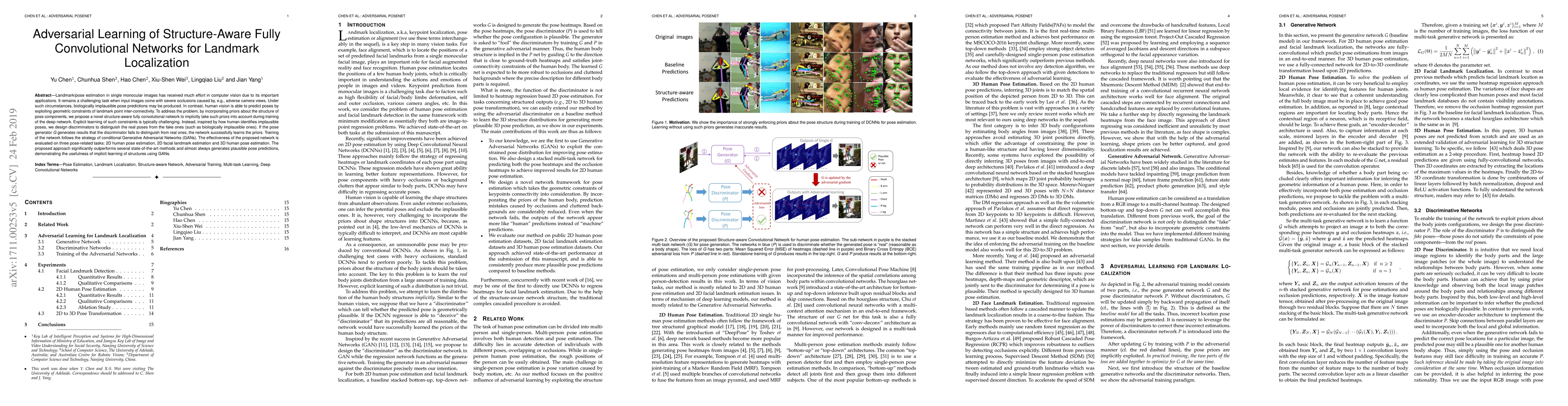A new approach using Generative Adversarial Networks improves landmark localization in single monocular images by incorporating priors on the structure of pose components, leading to more plausible predictions.