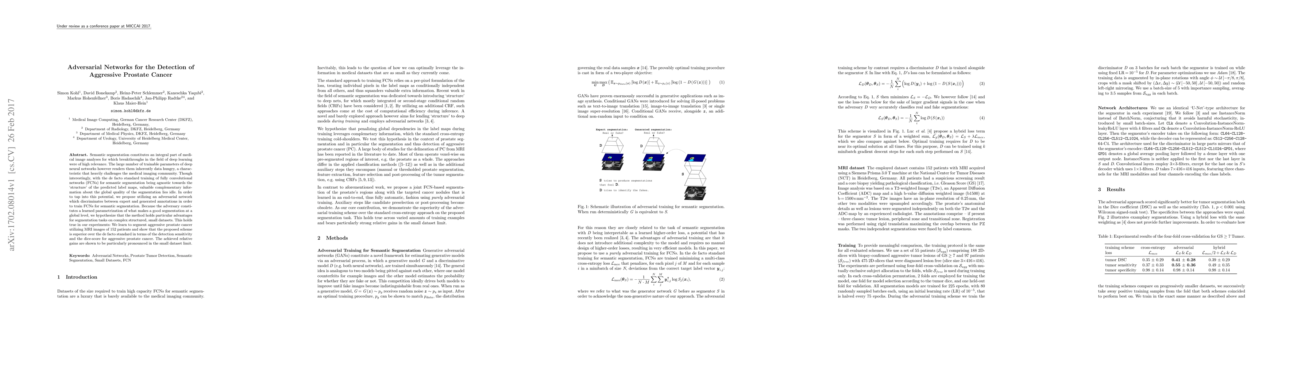 This paper proposes using adversarial networks to enhance fully convolutional networks (FCNs) for semantic segmentation in medical imaging, particularly for detecting aggressive prostate cancer. The method leverages adversarial training to improve segmentation quality, achieving better detection sensitivity and dice-score, especially in small dataset scenarios.