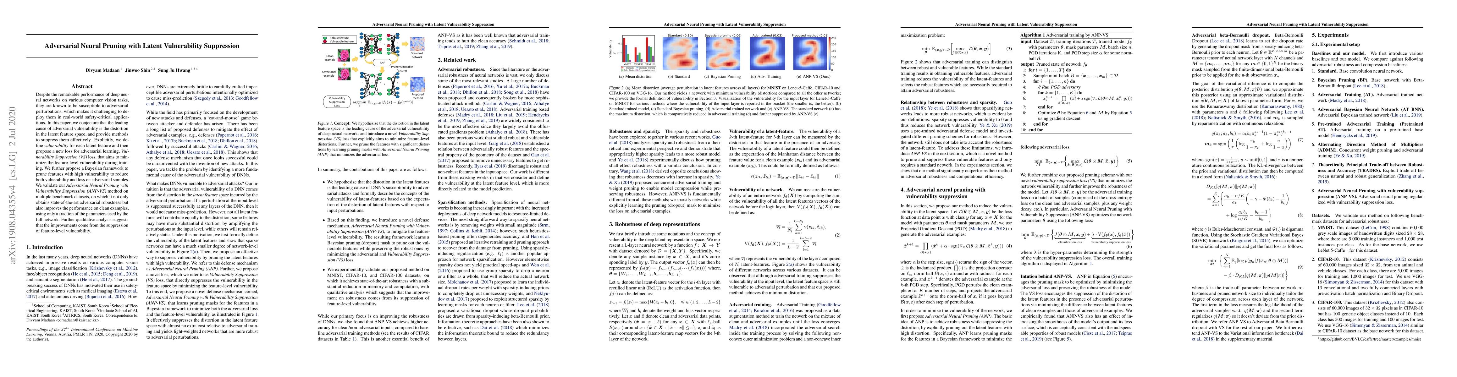This paper proposes a method for enhancing adversarial robustness in neural networks by minimizing latent feature-level vulnerabilities through a new Vulnerability Suppression loss and a Bayesian pruning framework. The resulting Adversarial Neural Pruning with Vulnerability Suppression (ANP-VS) method achieves state-of-the-art robustness while improving performance on clean data and reducing the number of parameters.