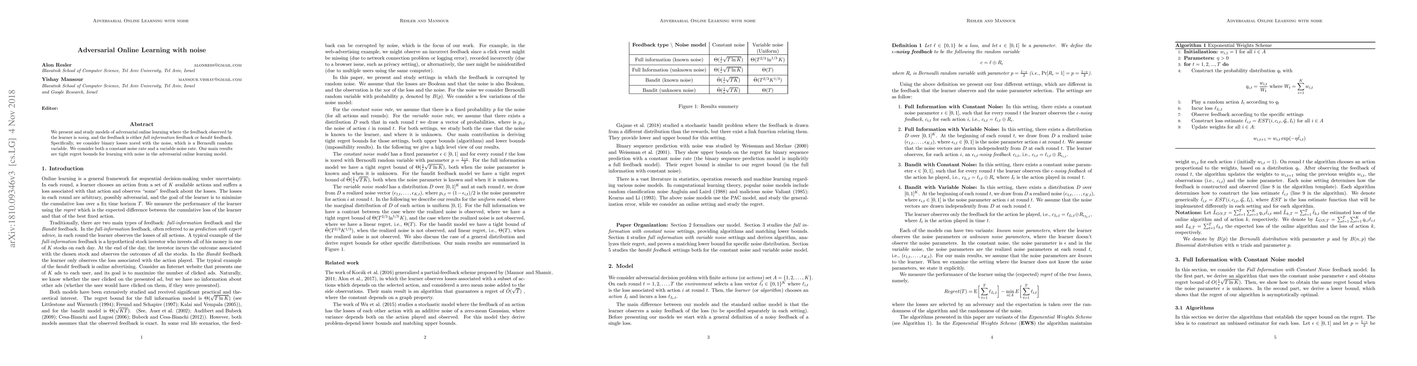 Our work is novel in its focus on the specific problem of adversarial noise in online learning, and provides a comprehensive analysis of the challenges and opportunities in this area.