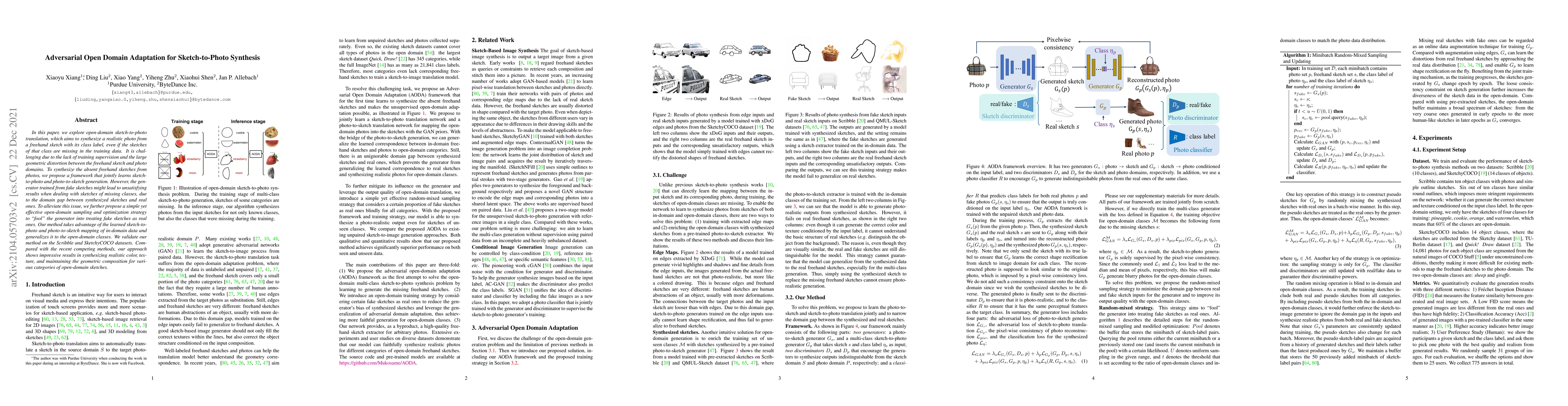 This paper proposes a framework for open-domain sketch-to-photo translation, synthesizing realistic photos from freehand sketches even when training data for those sketches is absent. The method employs adversarial training to bridge the domain gap and uses an optimization strategy to improve generalization to unseen classes.