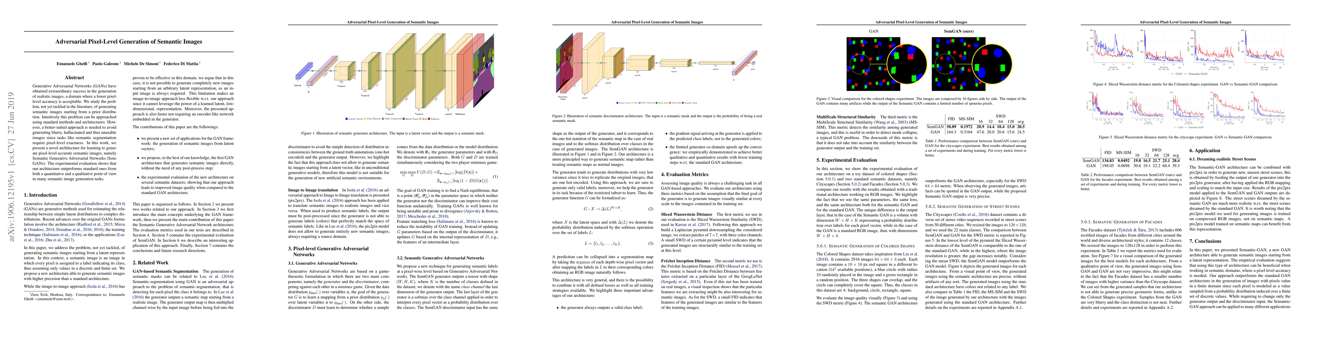 This paper introduces Semantic Generative Adversarial Networks (SemGANs) to generate pixel-level accurate semantic images, addressing the challenge of generating high-fidelity images for tasks like semantic segmentation. Experimental results demonstrate that SemGANs outperform standard GANs in both quantitative and qualitative evaluations.