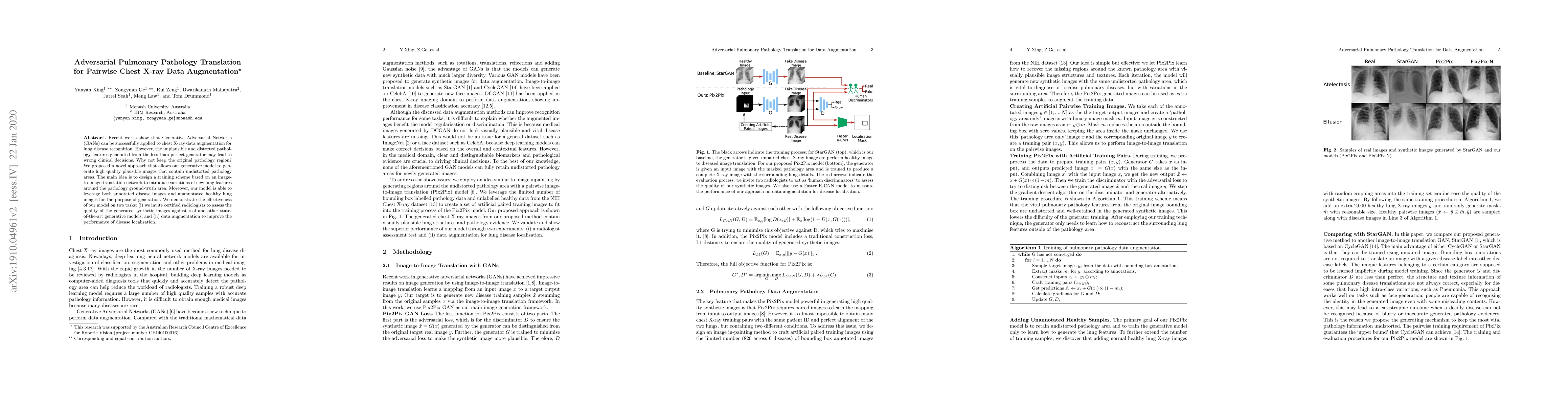Recent works show that Generative Adversarial Networks (GANs) can be successfully applied to chest X-ray data augmentation for lung disease recognition. However, the implausible and distorted pathology features generated from the less than perfect generator may lead to wrong clinical decisions. Why not keep the original pathology region? We proposed a novel approach that allows our generative model to generate high quality plausible images that contain undistorted pathology areas. The main idea is to design a training scheme based on an image-to-image translation network to introduce variations of new lung features around the pathology ground-truth area. Moreover, our model is able to leverage both annotated disease images and unannotated healthy lung images for the purpose of generation. We demonstrate the effectiveness of our model on two tasks: (i) we invite certified radiologists to assess the quality of the generated synthetic images against real and other state-of-the-art generative models, and (ii) data augmentation to improve the performance of disease localisation.