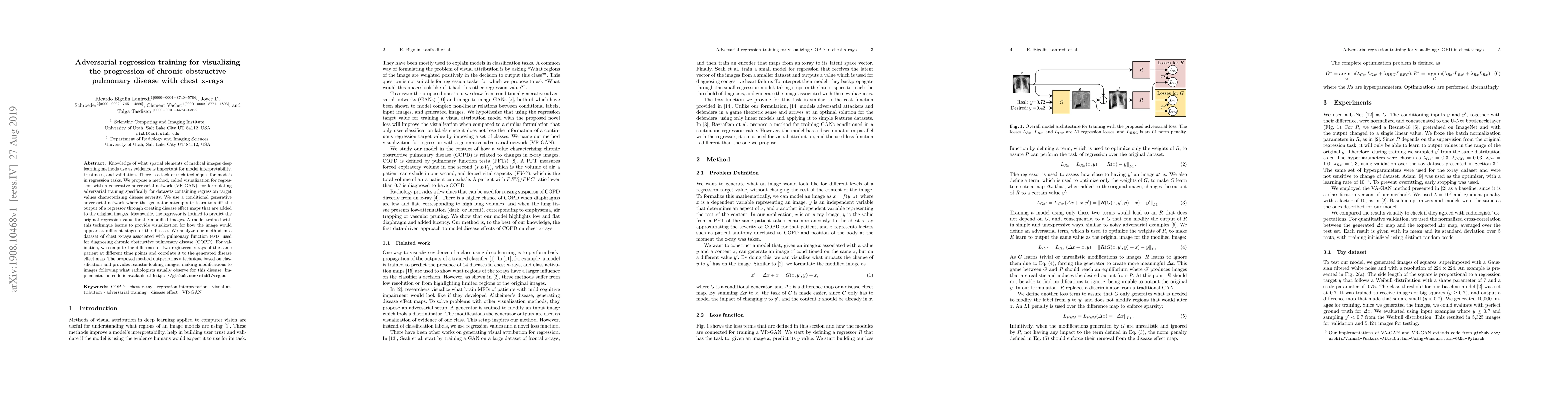 This paper proposes VR-GAN, a method for visualizing the progression of chronic obstructive pulmonary disease (COPD) using chest x-rays, by training a generative adversarial network to create disease effect maps that modify images. This technique enhances model interpretability and provides realistic visualizations of disease stages.