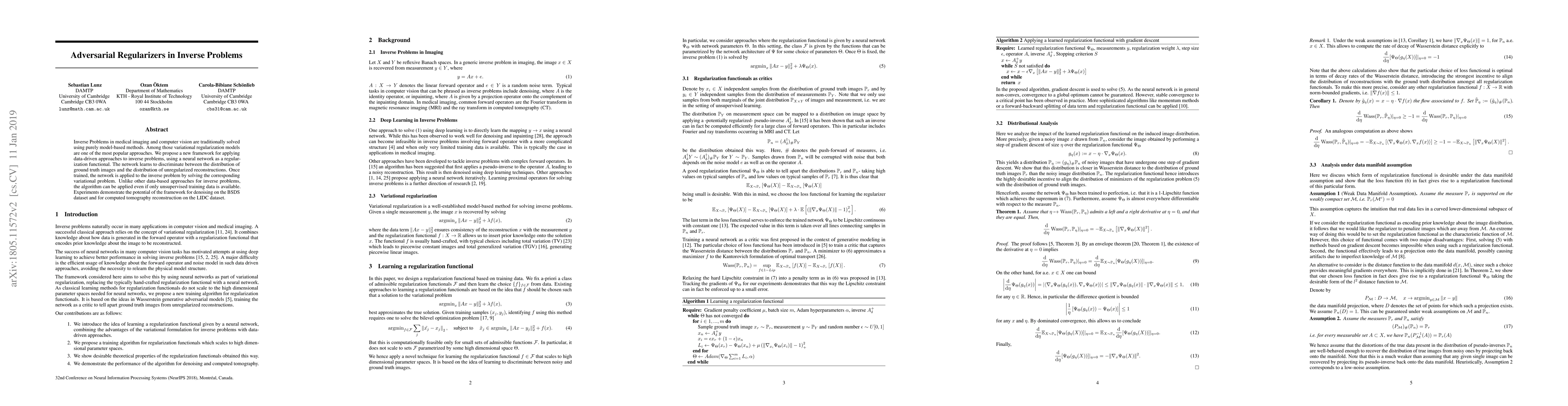 Inverse Problems in medical imaging and computer vision are traditionally solved using purely model-based methods. Among those variational regularization models are one of the most popular approaches. We propose a new framework for applying data-driven approaches to inverse problems, using a neural network as a regularization functional. The network learns to discriminate between the distribution of ground truth images and the distribution of unregularized reconstructions. Once trained, the network is applied to the inverse problem by solving the corresponding variational problem. Unlike other data-based approaches for inverse problems, the algorithm can be applied even if only unsupervised training data is available. Experiments demonstrate the potential of the framework for denoising on the BSDS dataset and for computed tomography reconstruction on the LIDC dataset.