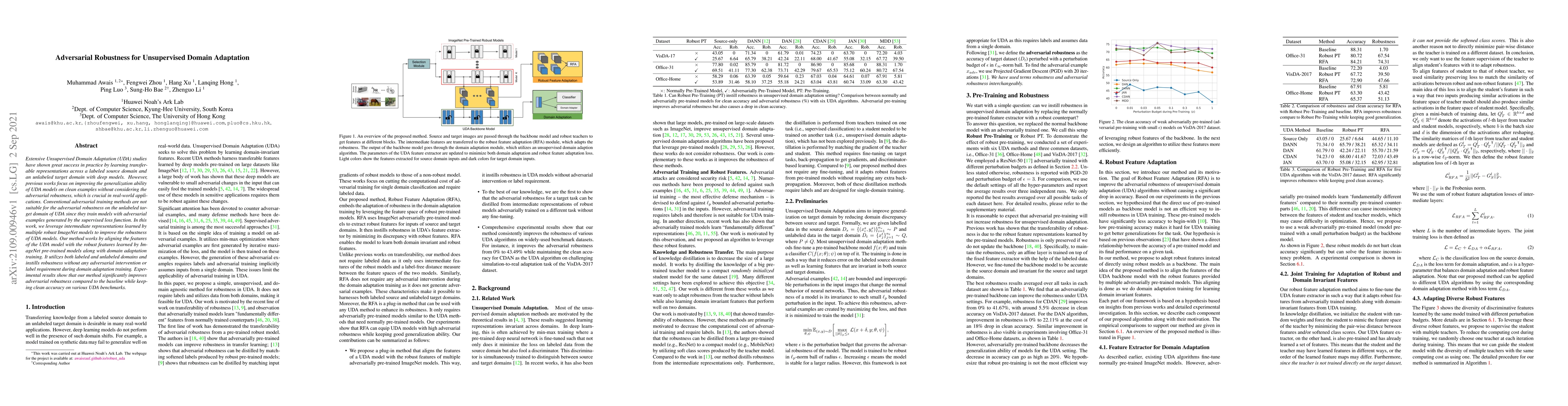This paper proposes a method to enhance the adversarial robustness of Unsupervised Domain Adaptation models by aligning their intermediate representations with those of robust ImageNet pre-trained models, without requiring adversarial examples or labels during training, achieving improved robustness and maintaining clean accuracy.