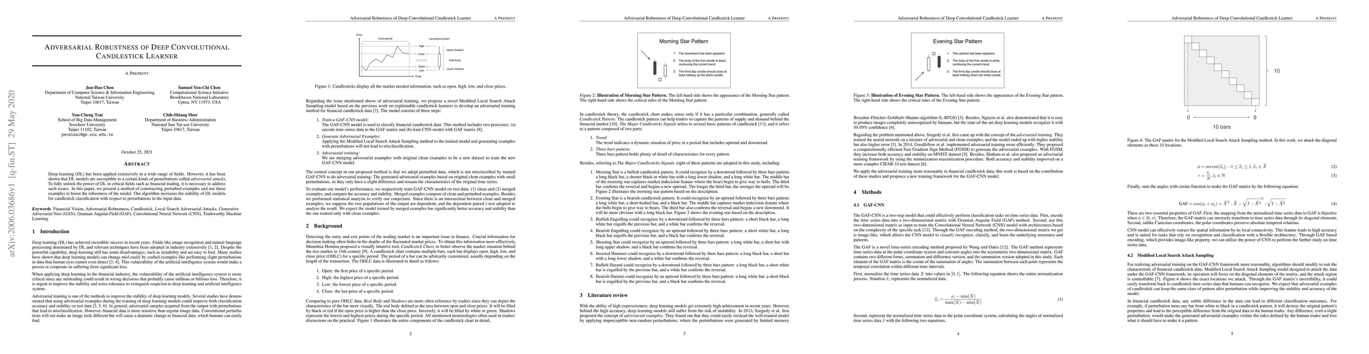 Deep learning (DL) has been applied extensively in a wide range of fields. However, it has been shown that DL models are susceptible to a certain kinds of perturbations called \emph{adversarial attacks}. To fully unlock the power of DL in critical fields such as financial trading, it is necessary to address such issues. In this paper, we present a method of constructing perturbed examples and use these examples to boost the robustness of the model. Our algorithm increases the stability of DL models for candlestick classification with respect to perturbations in the input data.