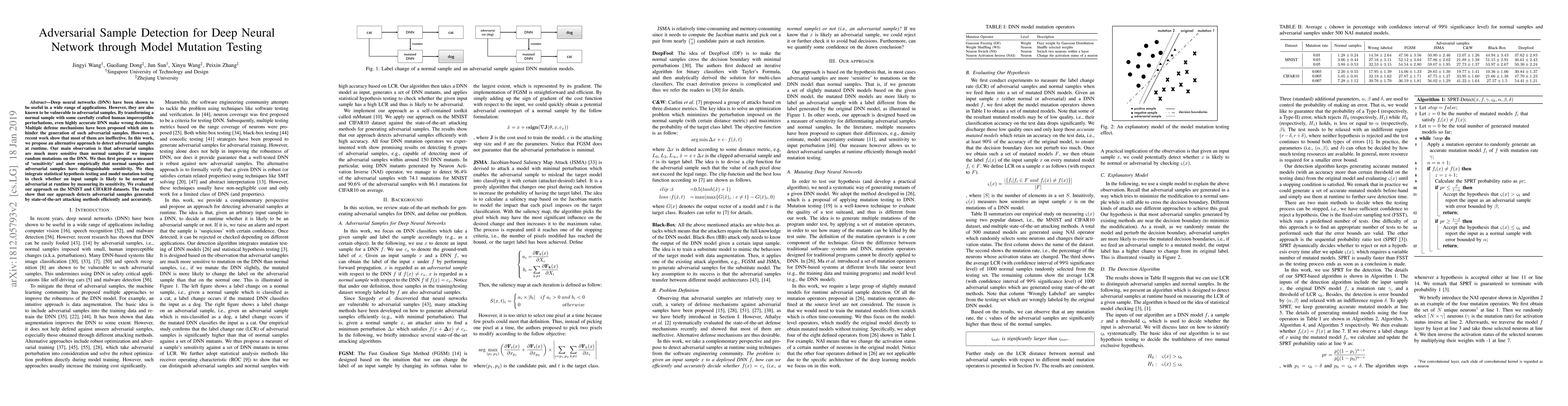 This paper proposes a method to detect adversarial samples in deep neural networks using model mutation testing and statistical hypothesis testing. It finds that adversarial samples are more sensitive to random mutations compared to normal samples, allowing for effective runtime detection.