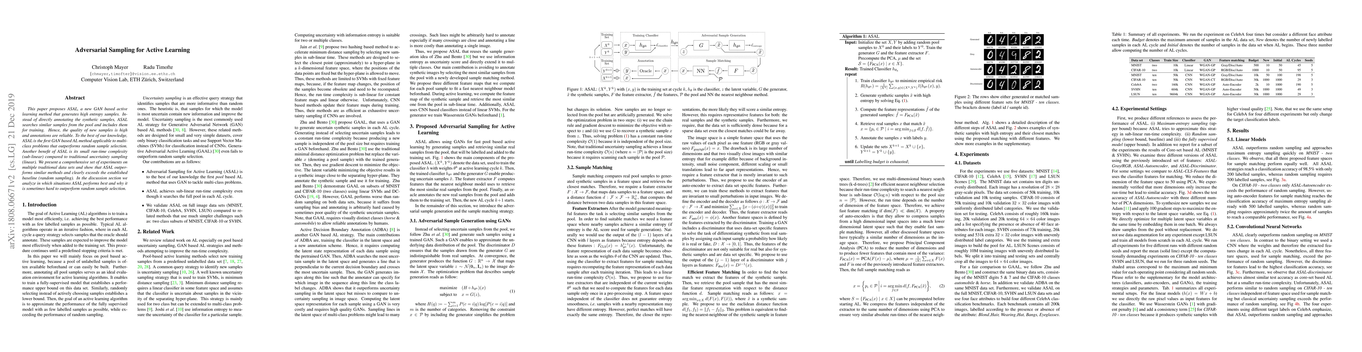 A new active learning method called ASAL uses a GAN to generate high-quality samples and outperforms traditional methods like random sampling on multi-class problems.