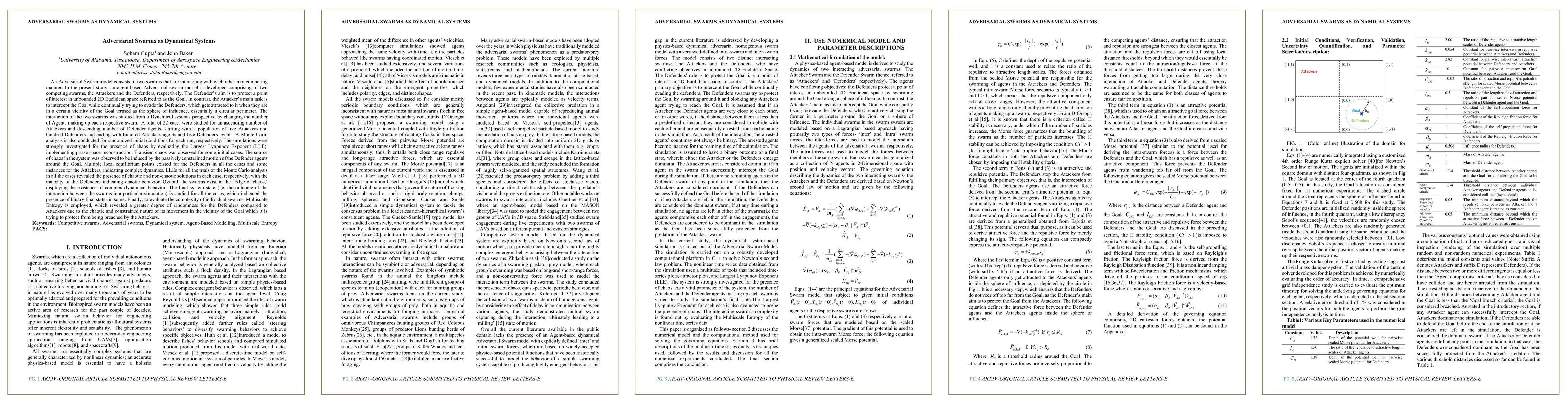 This study develops an agent-based Adversarial Swarm model with competing Attackers and Defenders, analyzing their dynamics using Dynamical Systems theory. The simulations reveal chaotic behavior, especially in the Defenders, and the presence of multiple local equilibrium points, indicating complex dynamics and binary final states.