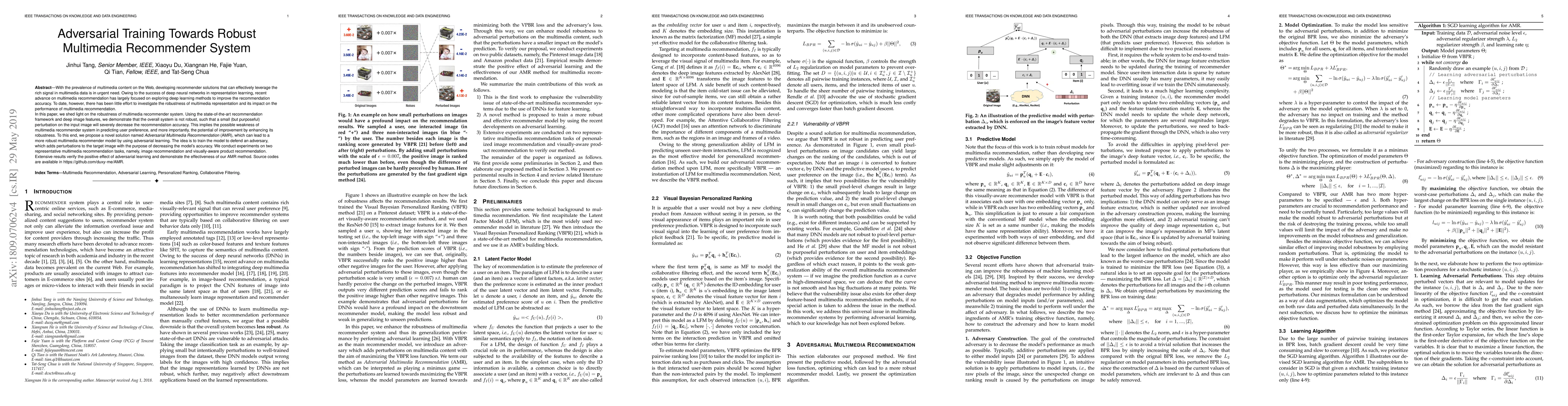 This paper investigates the robustness of multimedia recommender systems, revealing that they are vulnerable to small perturbations in input images. To enhance robustness, the authors propose Adversarial Multimedia Recommendation (AMR), which uses adversarial training to improve the system's resilience against such perturbations, achieving better performance in image recommendation and visually-aware product recommendation tasks.