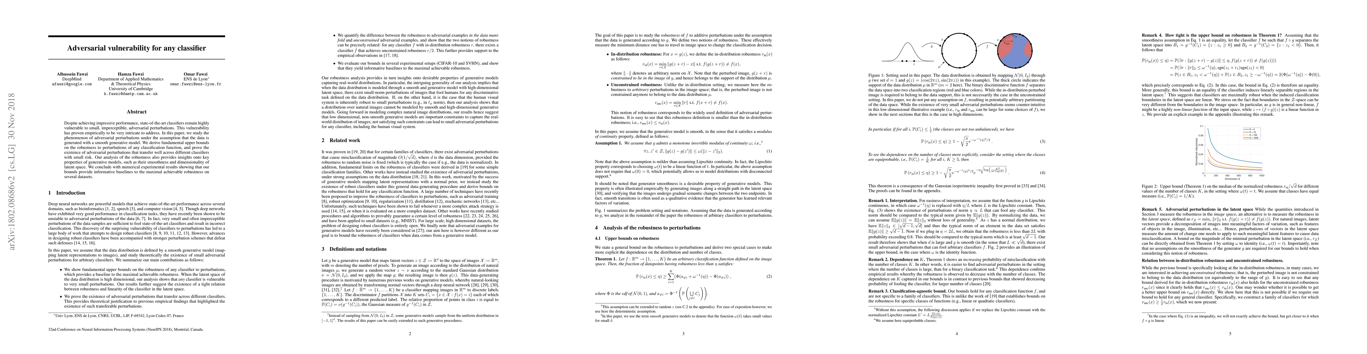 This paper investigates the inherent vulnerability of state-of-the-art classifiers to adversarial perturbations, deriving fundamental upper bounds on robustness and demonstrating the existence of transferable adversarial examples. Experimental results show that these bounds serve as informative baselines for maximal achievable robustness across various datasets.