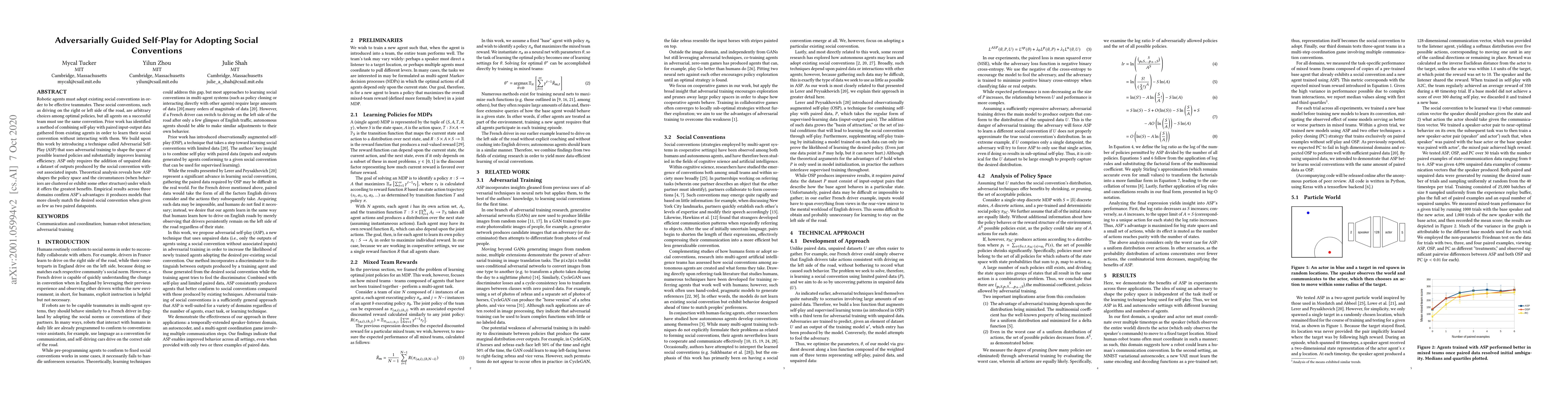 This research introduces Adversarial Self-Play (ASP), a technique that enhances learning efficiency for robotic agents to adopt social conventions. ASP uses adversarial training with unpaired data (outputs from existing agents), improving performance with as few as two paired examples across various domains.