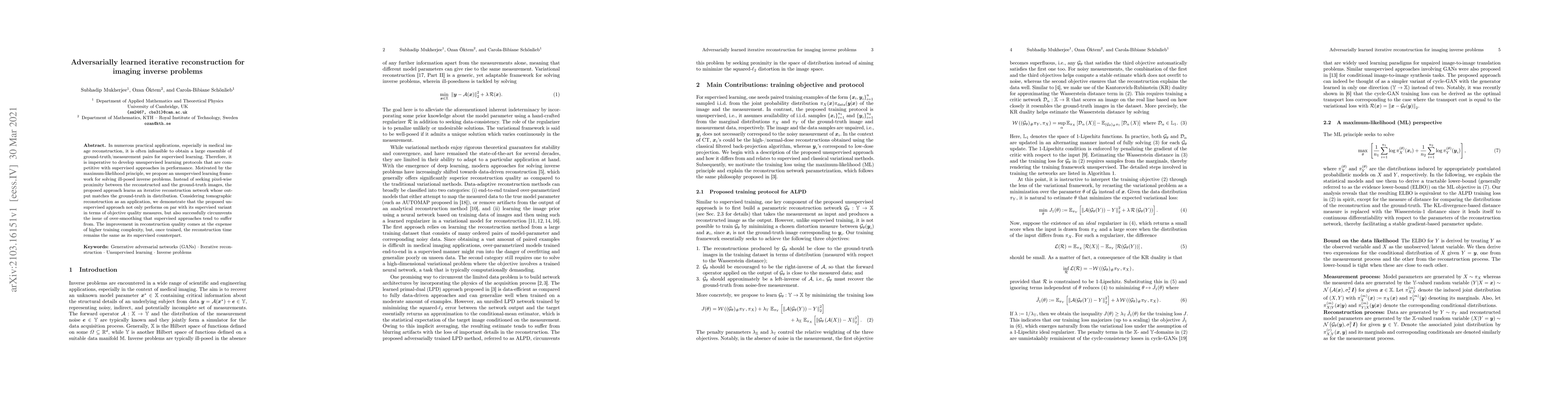 This paper proposes an unsupervised adversarial learning framework for solving ill-posed imaging inverse problems, demonstrating competitive performance with supervised methods in medical image reconstruction without requiring ground-truth data. The method trains an iterative reconstruction network to match the ground-truth distribution, achieving better reconstruction quality while avoiding over-smoothing.