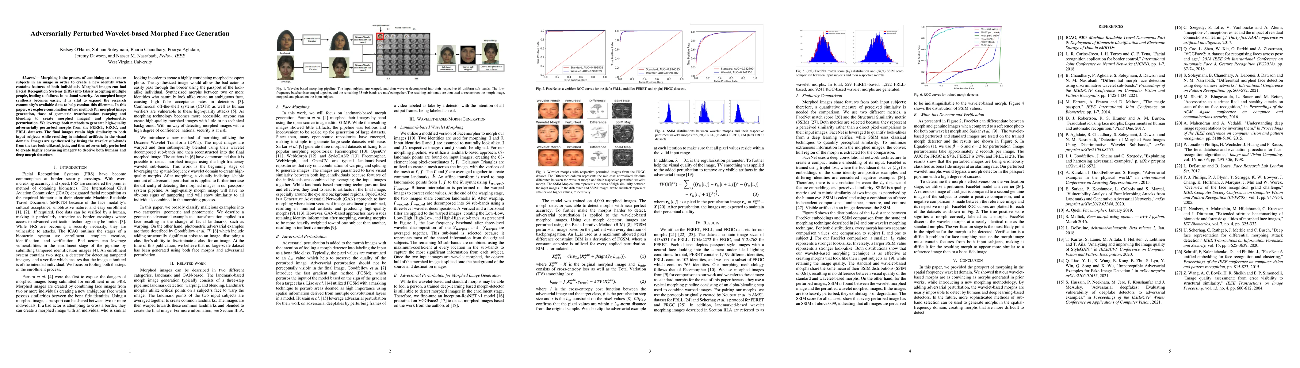 Morphing is the process of combining two or more subjects in an image in order to create a new identity which contains features of both individuals. Morphed images can fool Facial Recognition Systems (FRS) into falsely accepting multiple people, leading to failures in national security. As morphed image synthesis becomes easier, it is vital to expand the research community's available data to help combat this dilemma. In this paper, we explore combination of two methods for morphed image generation, those of geometric transformation (warping and blending to create morphed images) and photometric perturbation. We leverage both methods to generate high-quality adversarially perturbed morphs from the FERET, FRGC, and FRLL datasets. The final images retain high similarity to both input subjects while resulting in minimal artifacts in the visual domain. Images are synthesized by fusing the wavelet sub-bands from the two look-alike subjects, and then adversarially perturbed to create highly convincing imagery to deceive both humans and deep morph detectors.